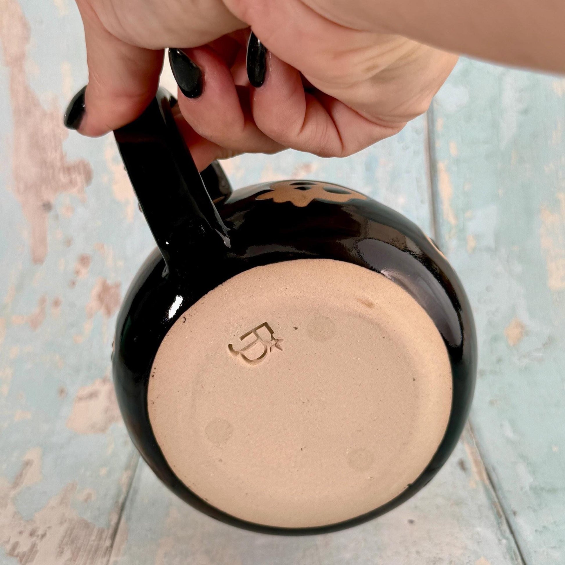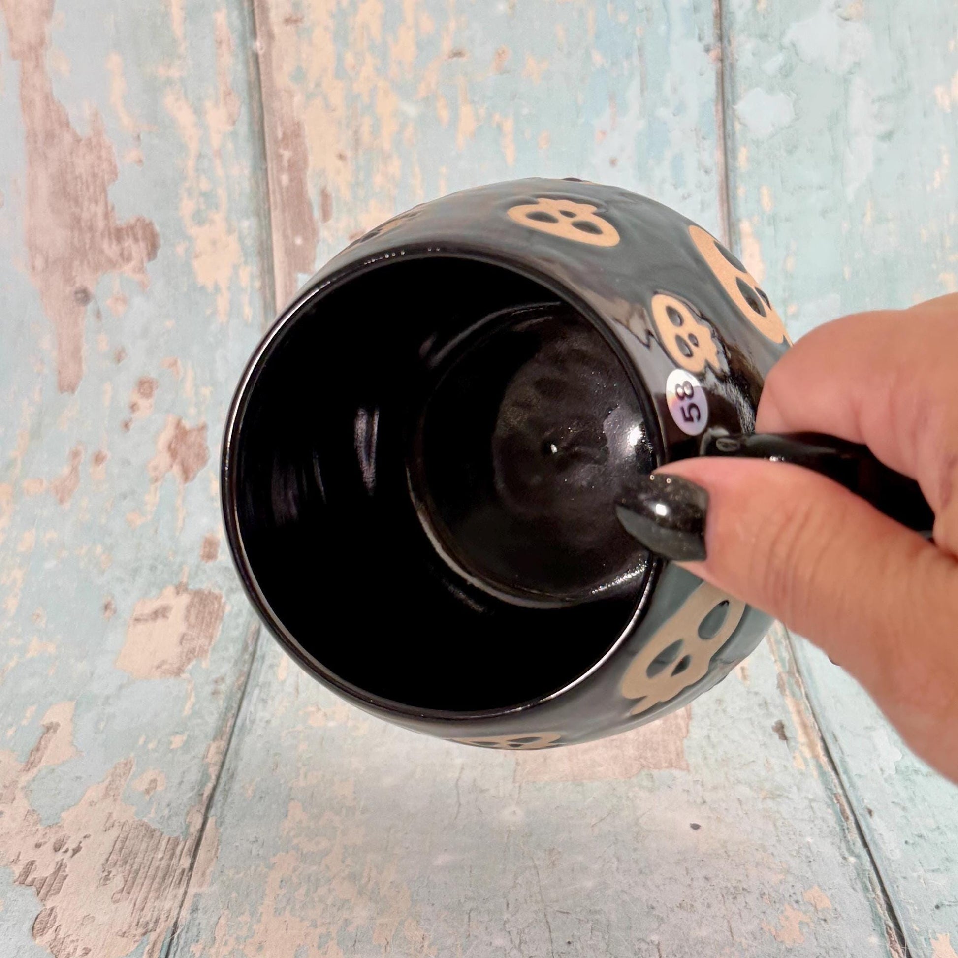 Black Skull Mug, Handmade Ceramic Cup, Spooky Halloween Mug