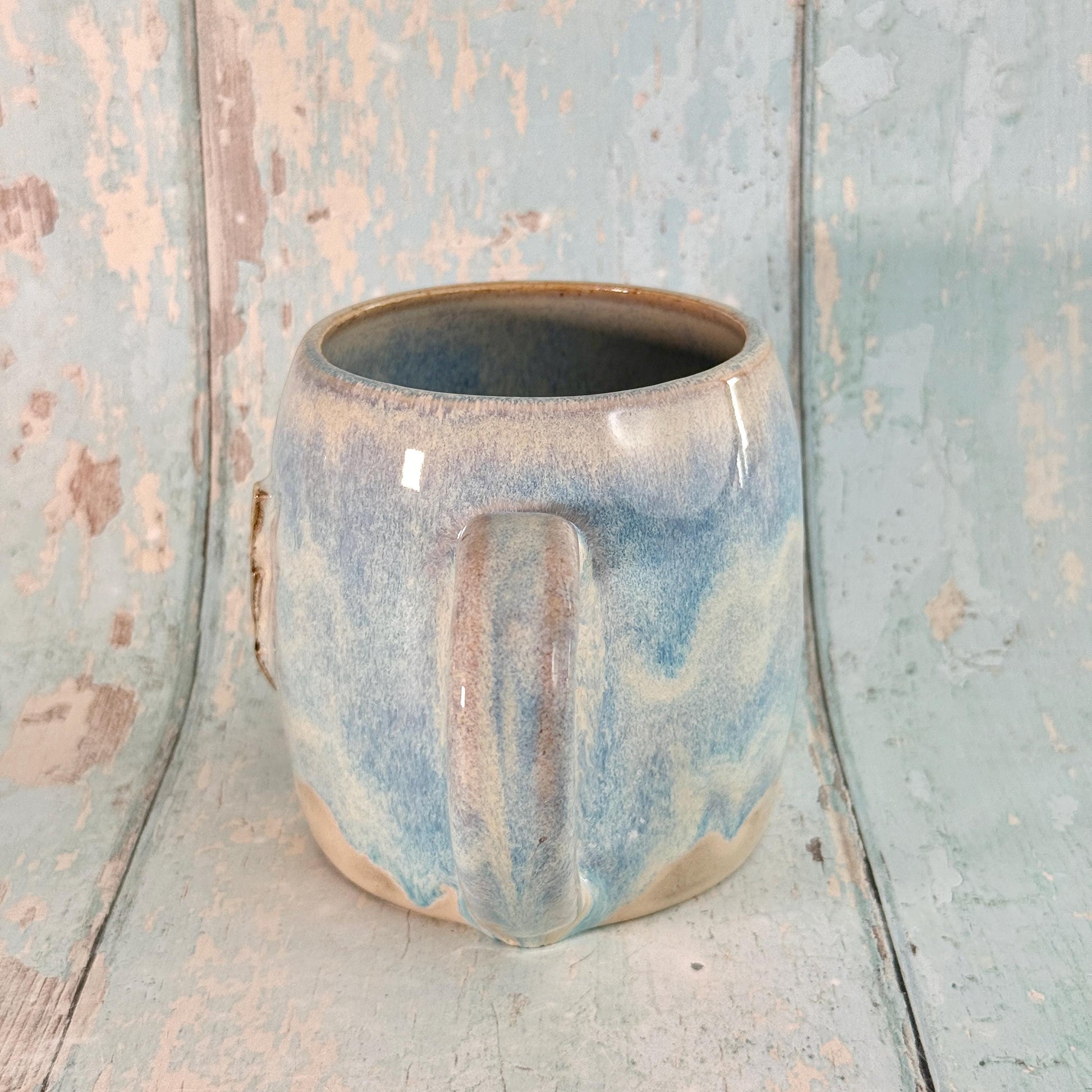 This mug is glazed with a Blue drippy glaze with a real gold lightening bolt and made from stoneware clay.