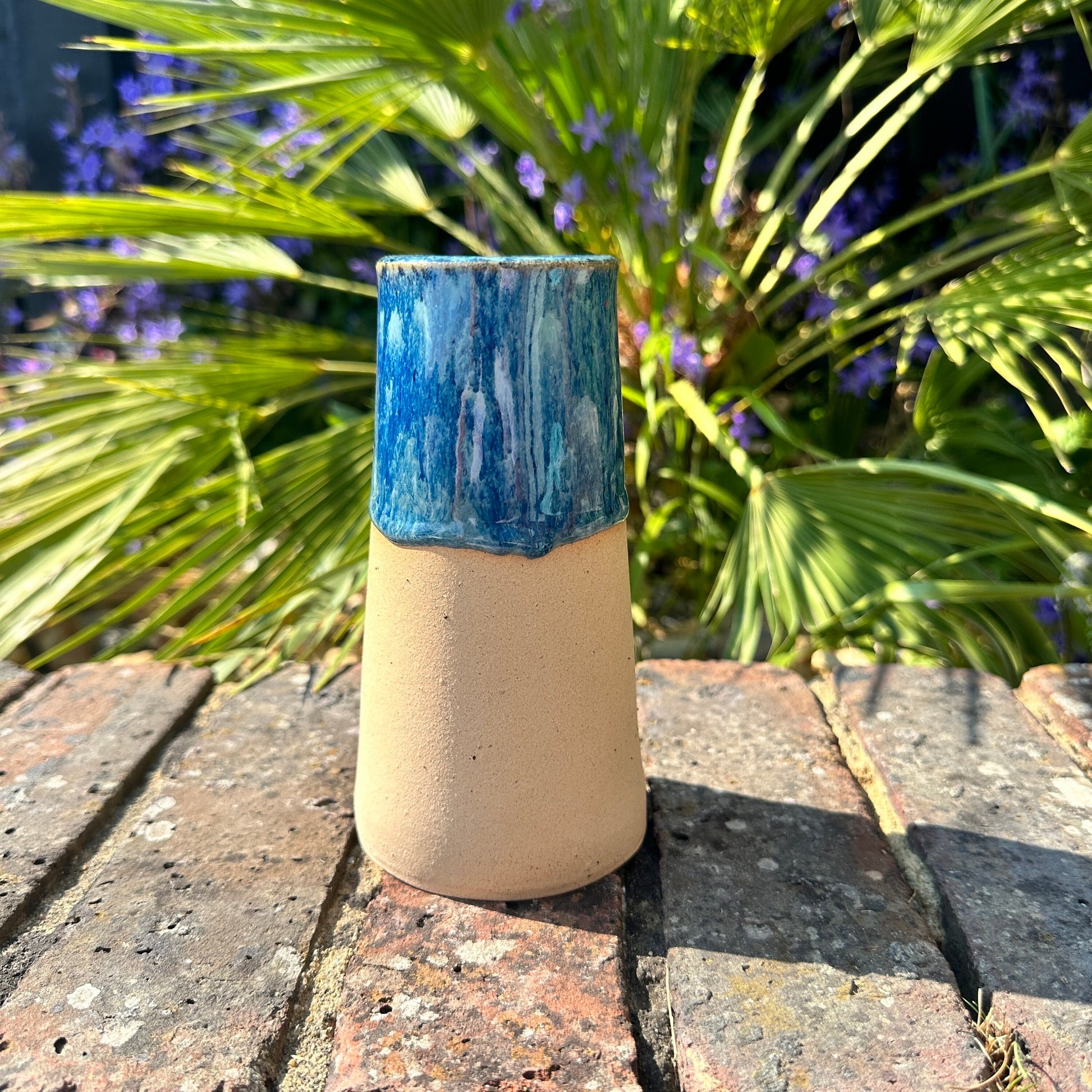 Glazed half way down the outside this Vase is both elegant and different. The beautiful flowing glaze covers the naked attractive speckled glaze.