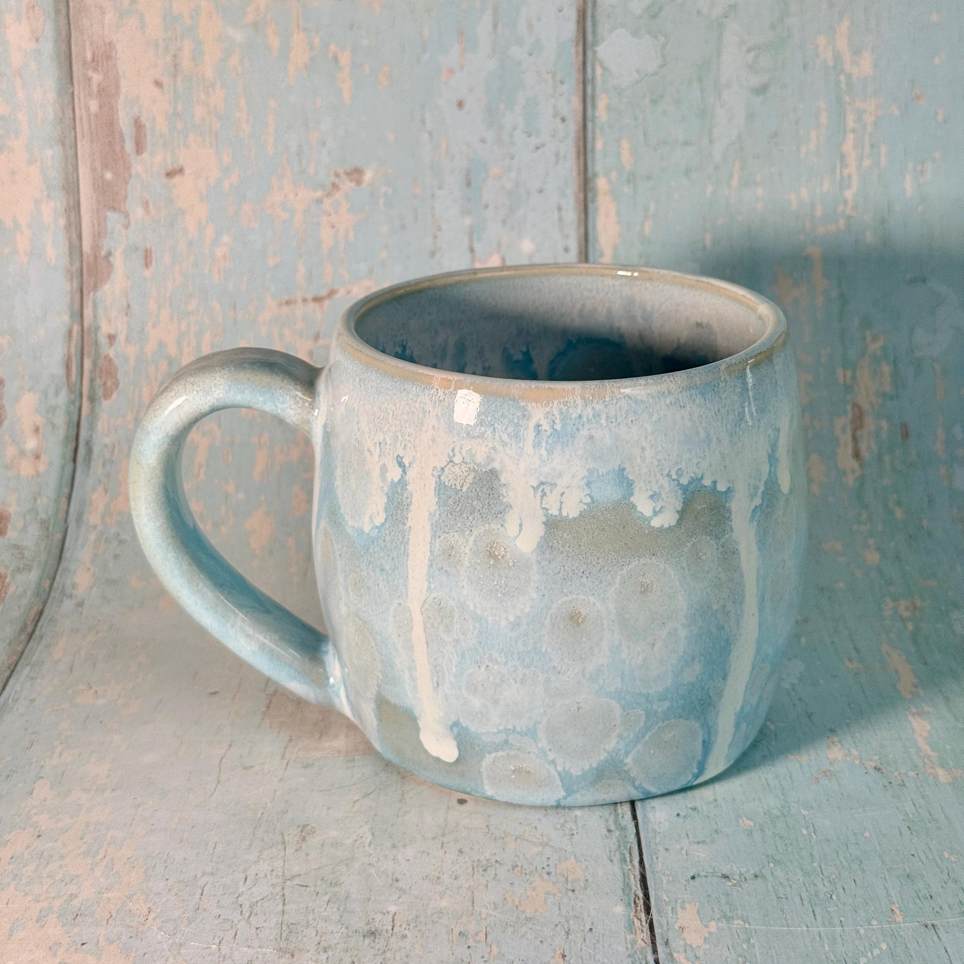 This blue star mug is made from white stoneware clay, with a real gold Star.