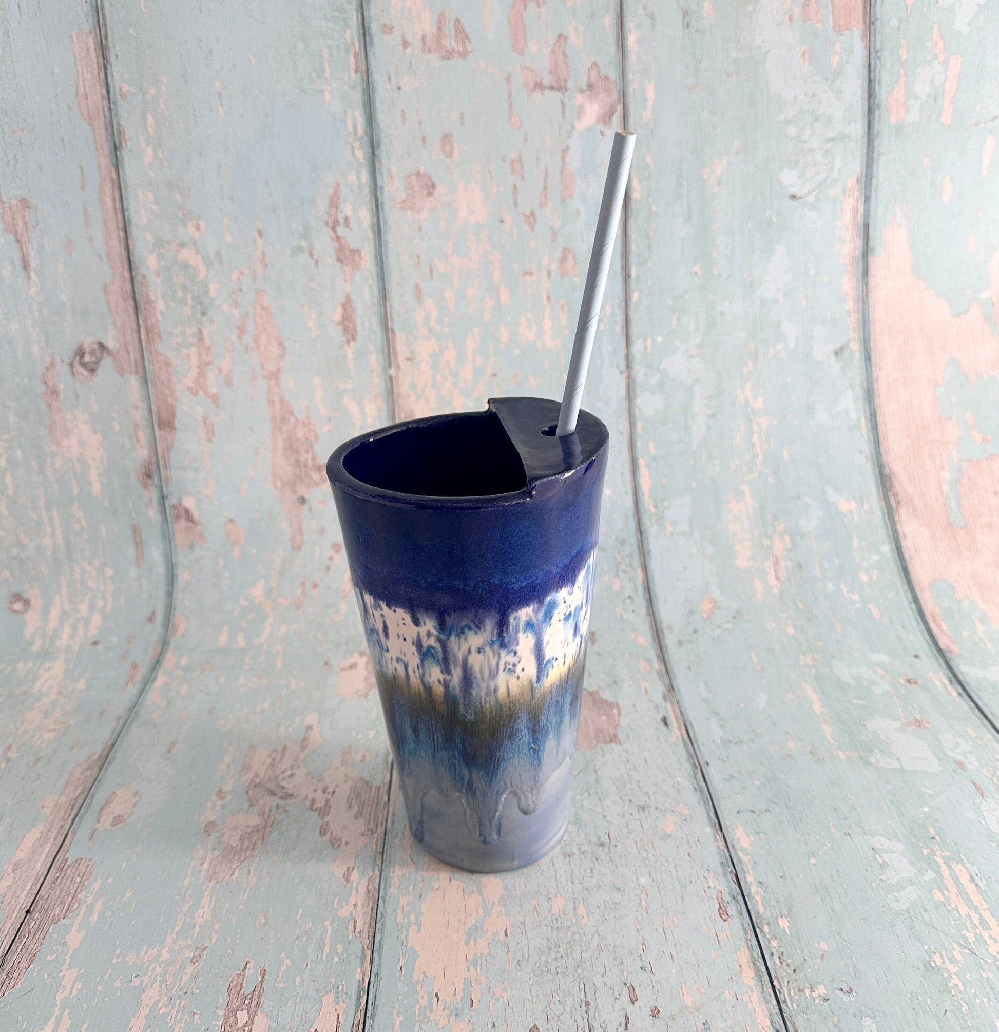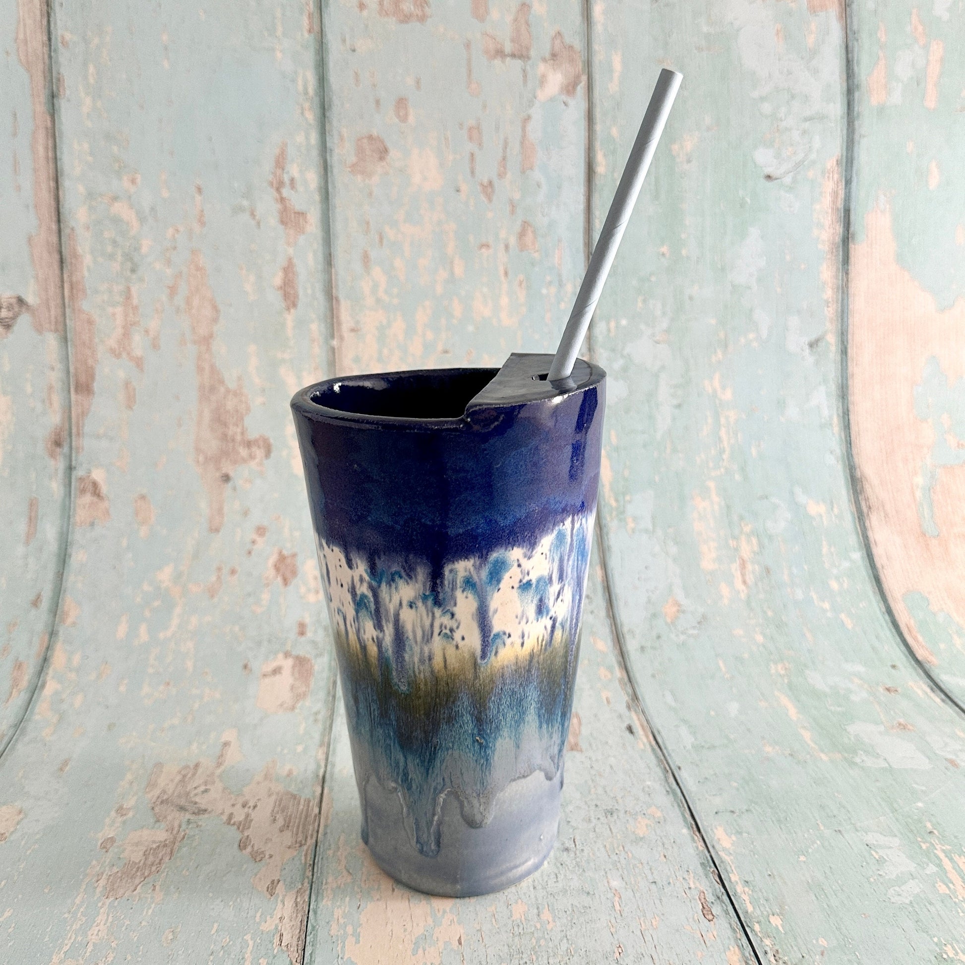 Blue Straw-holder Tumbler, Large Ceramic Cup