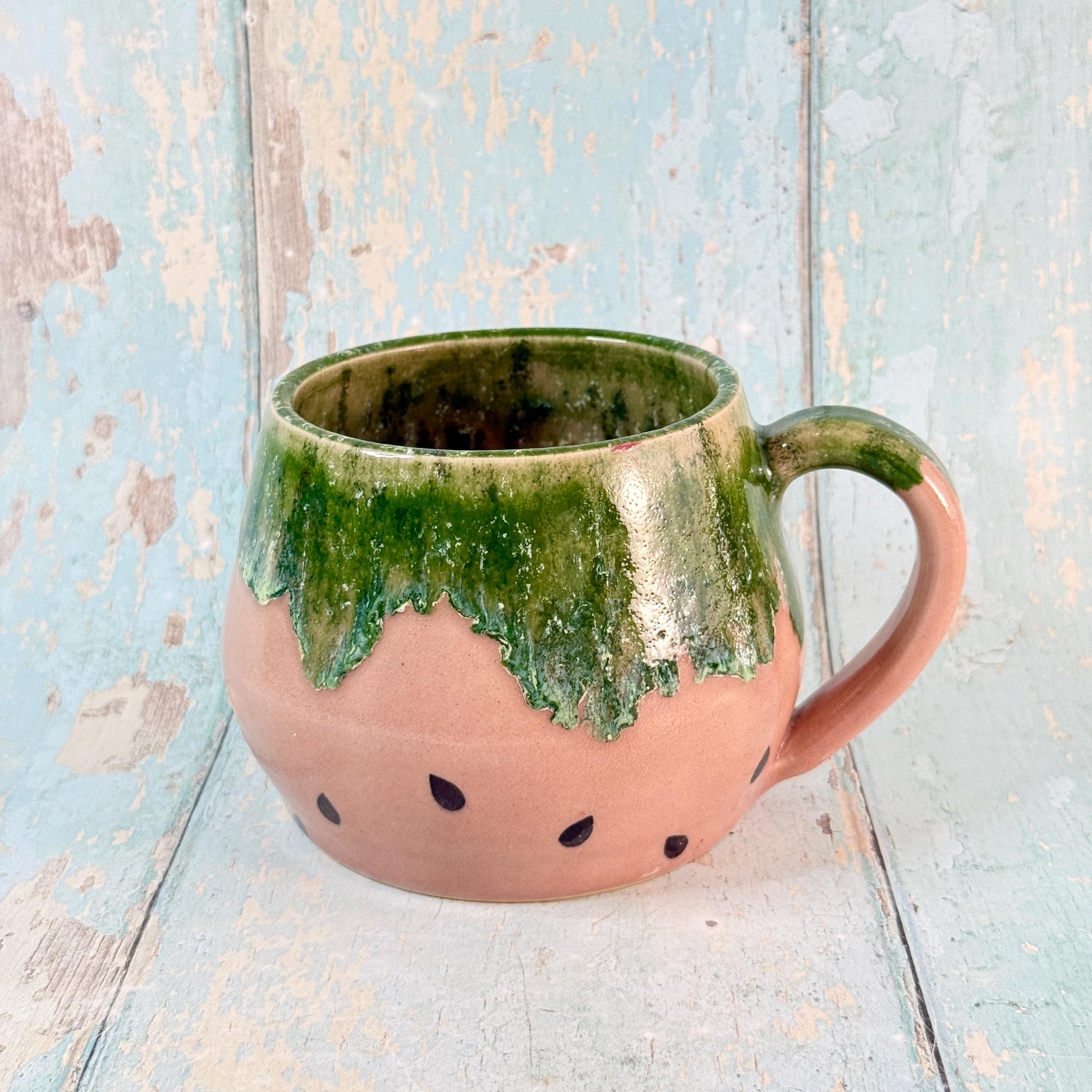 Ceramic Watermelon Mug, Large Pink and Green Cup