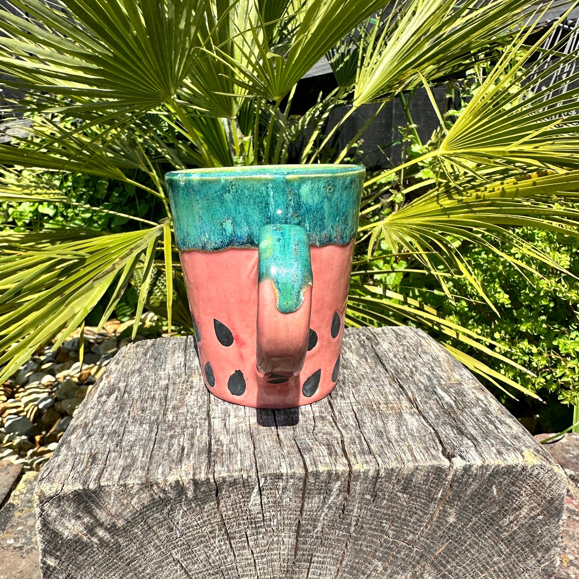 Ceramic Watermelon Mug, Large Pink and Green Cup