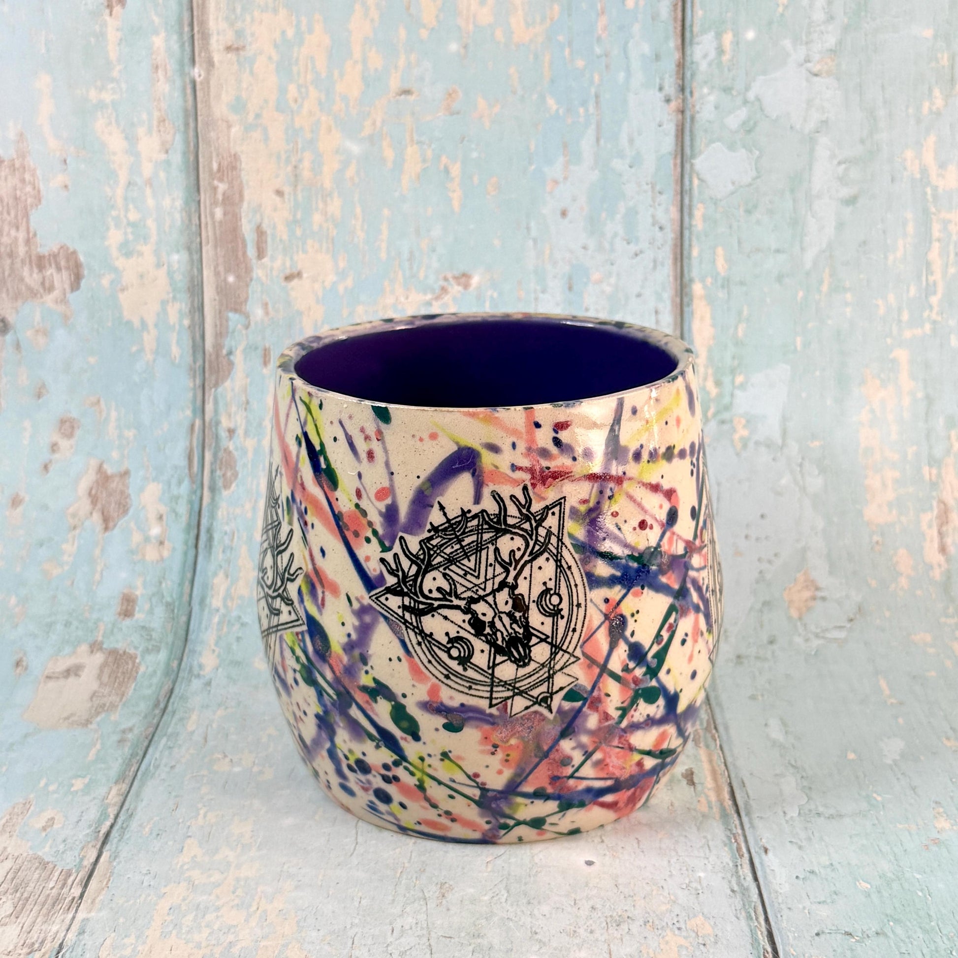 Dark Purple Boho Stag Skull Mug, Large Ceramic Cup