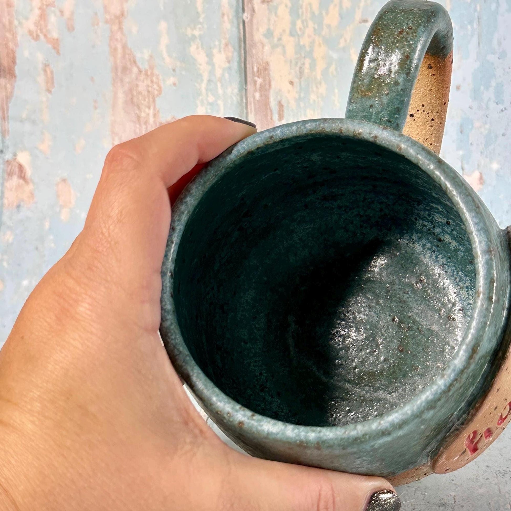 This one of a kind Christmas Hohoho mug is made from lava fleck stoneware with a green glaze.