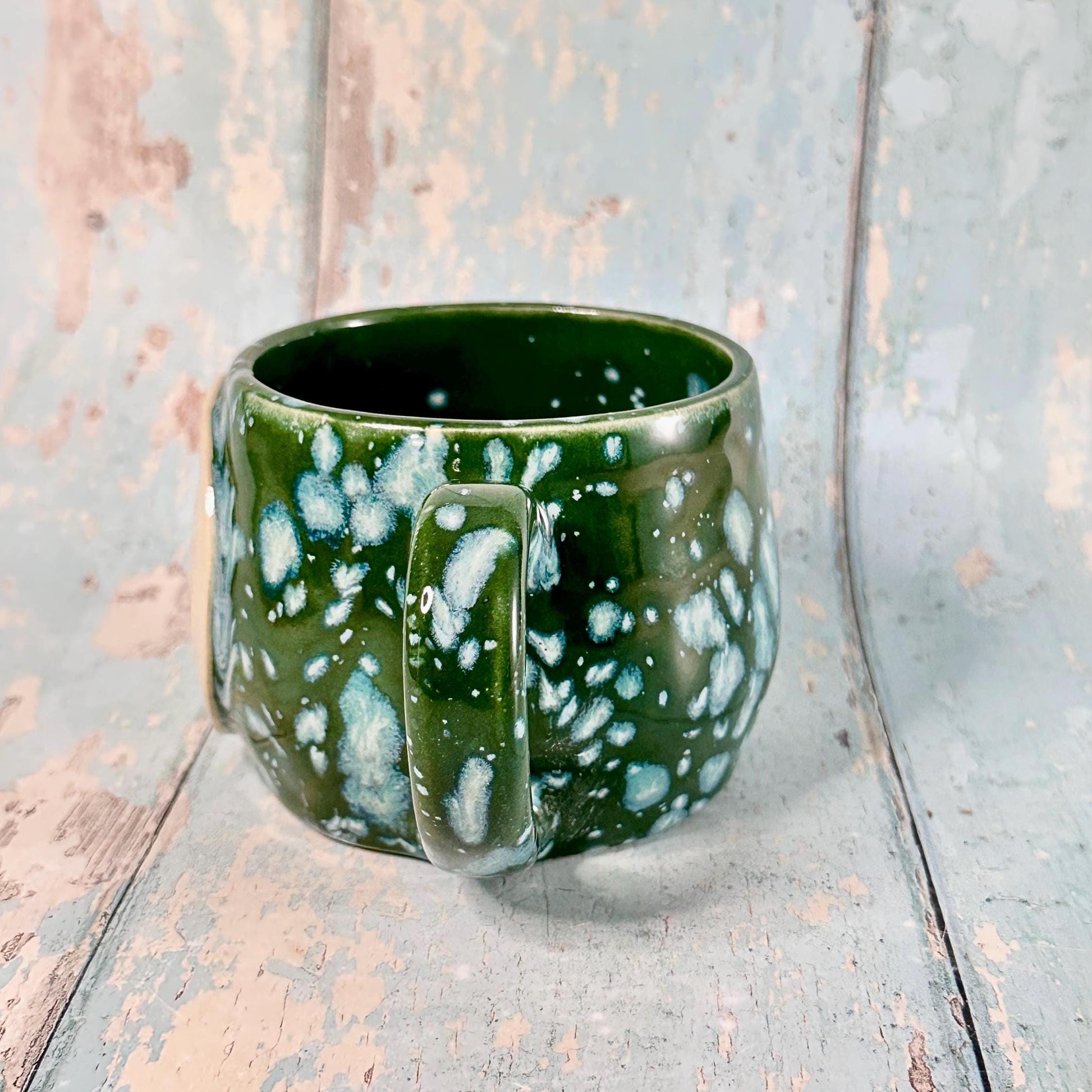 Green Christmas Snow Globe Mug, Handmade Ceramic Cup