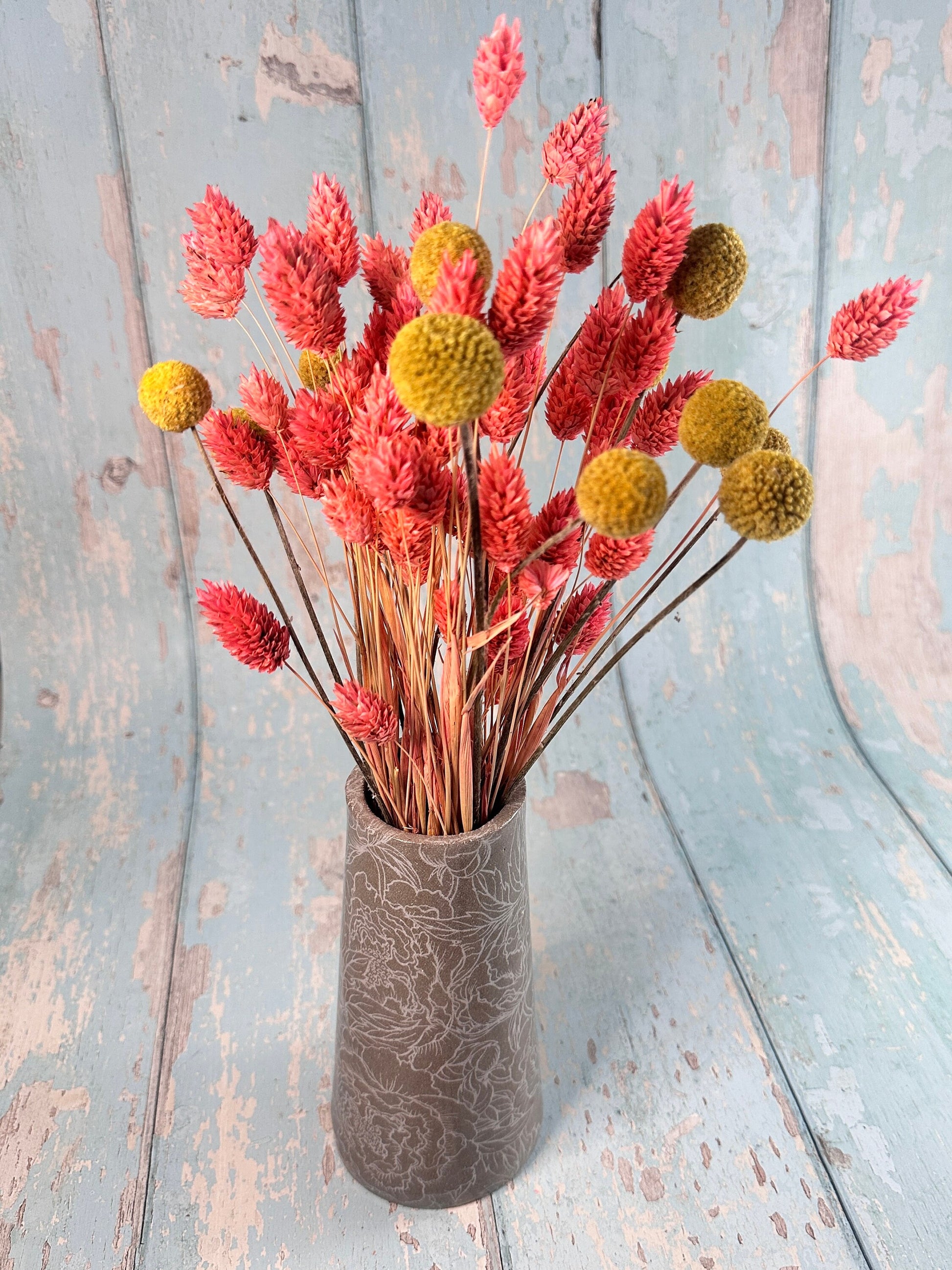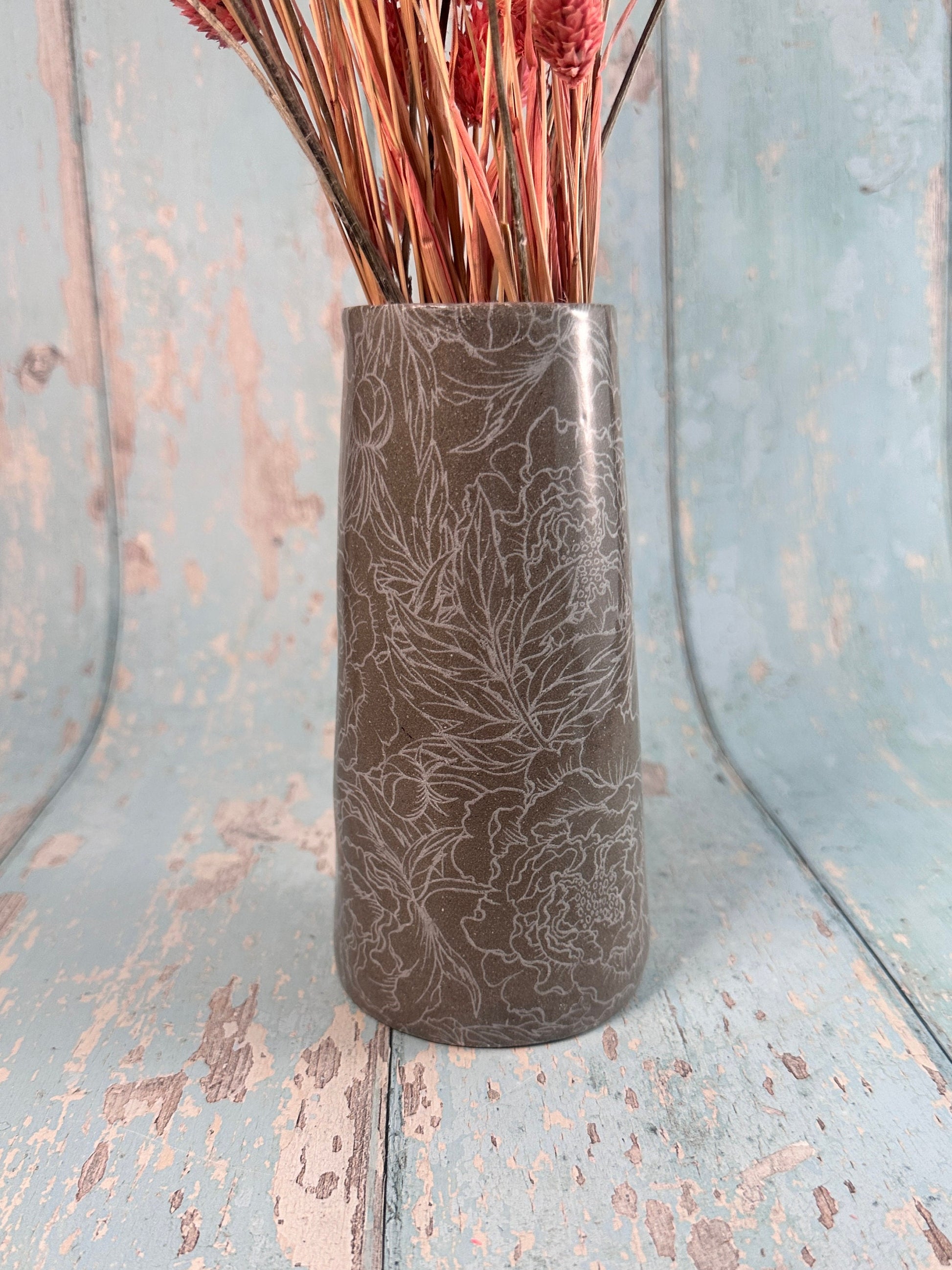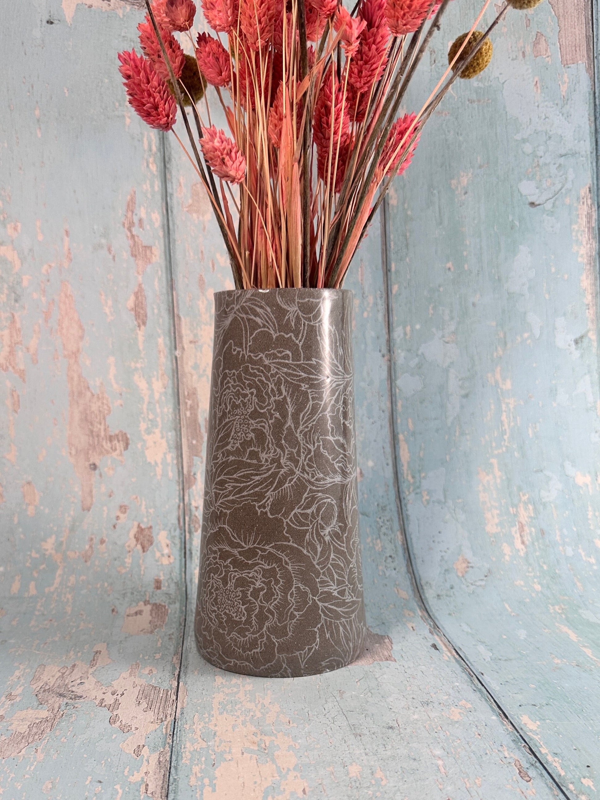 Grey Peony Ceramic Vase, Handmade Modern Pottery