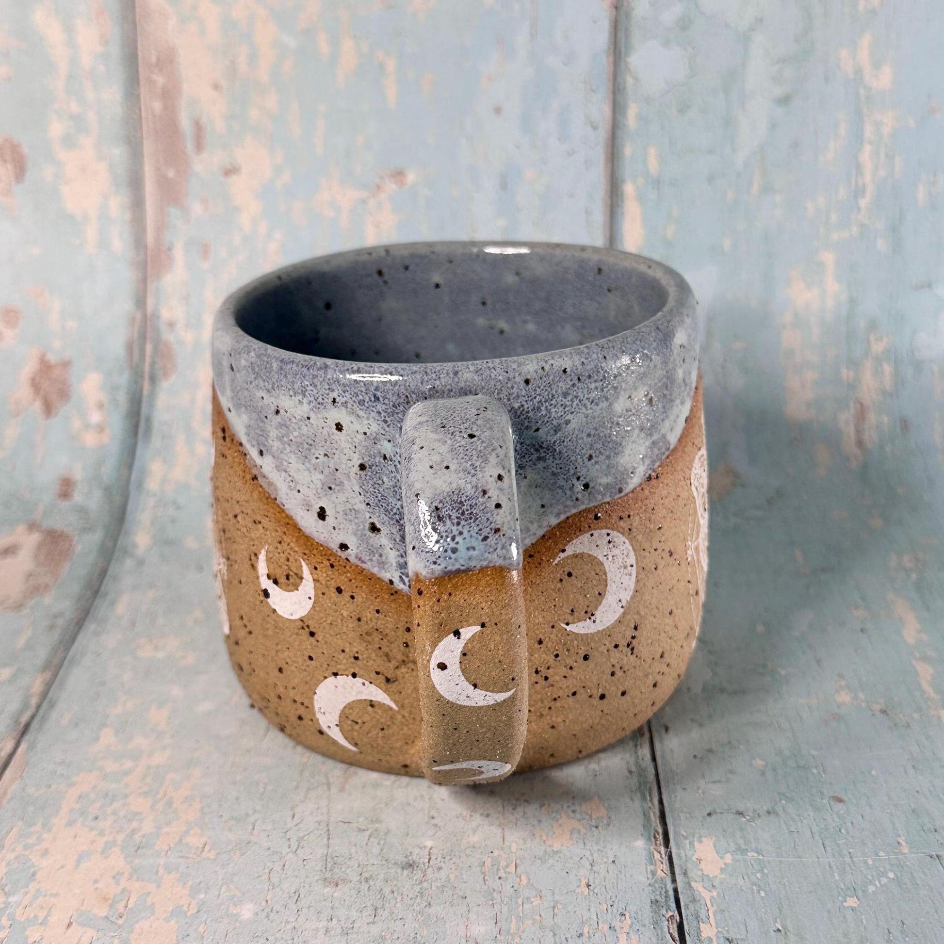 This mug has beautiful moth illustrations, and made from lava fleck stoneware clay.