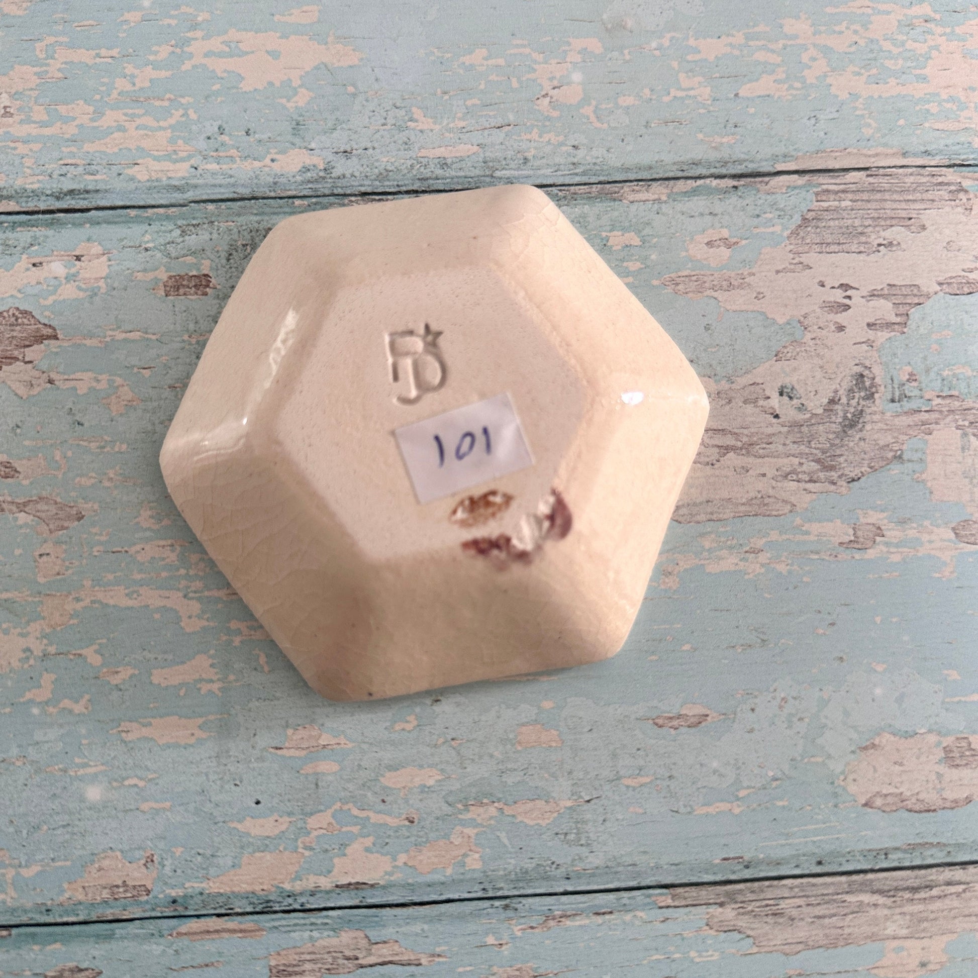 Orange and Green Jewellery Dish, Handmade Hexagon Ceramic Pot