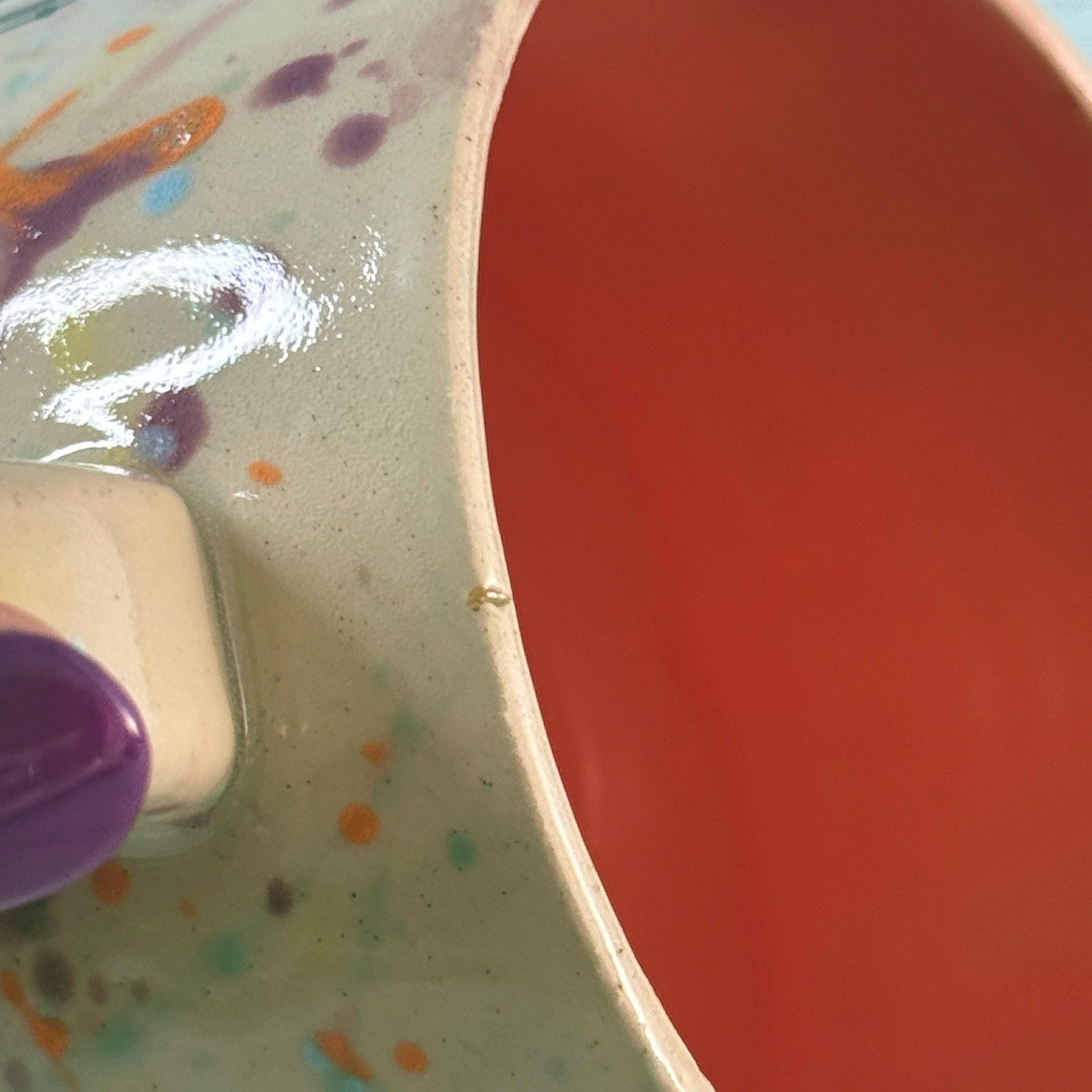Colour: Black, pink and other pastel colour splashes over a white Stoneware clay