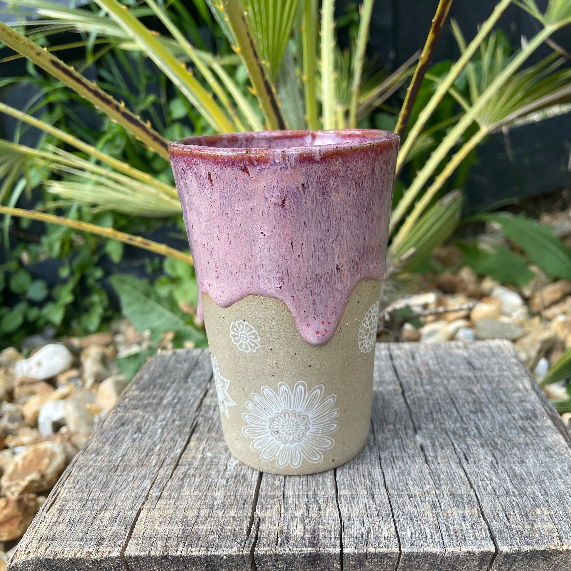 Pink Floral Ceramic Tumbler, Handmade Modern Cup