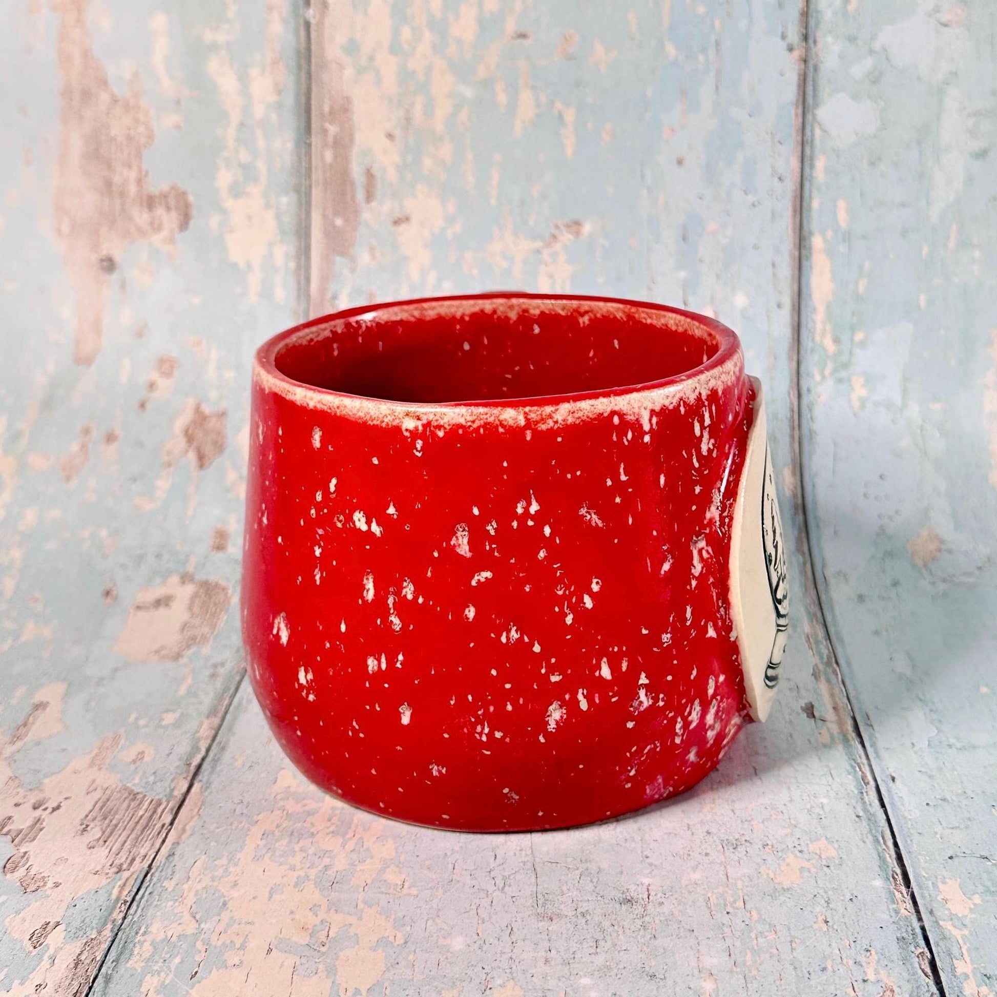 Red Christmas Snow Globe Mug, Handmade Ceramic Cup