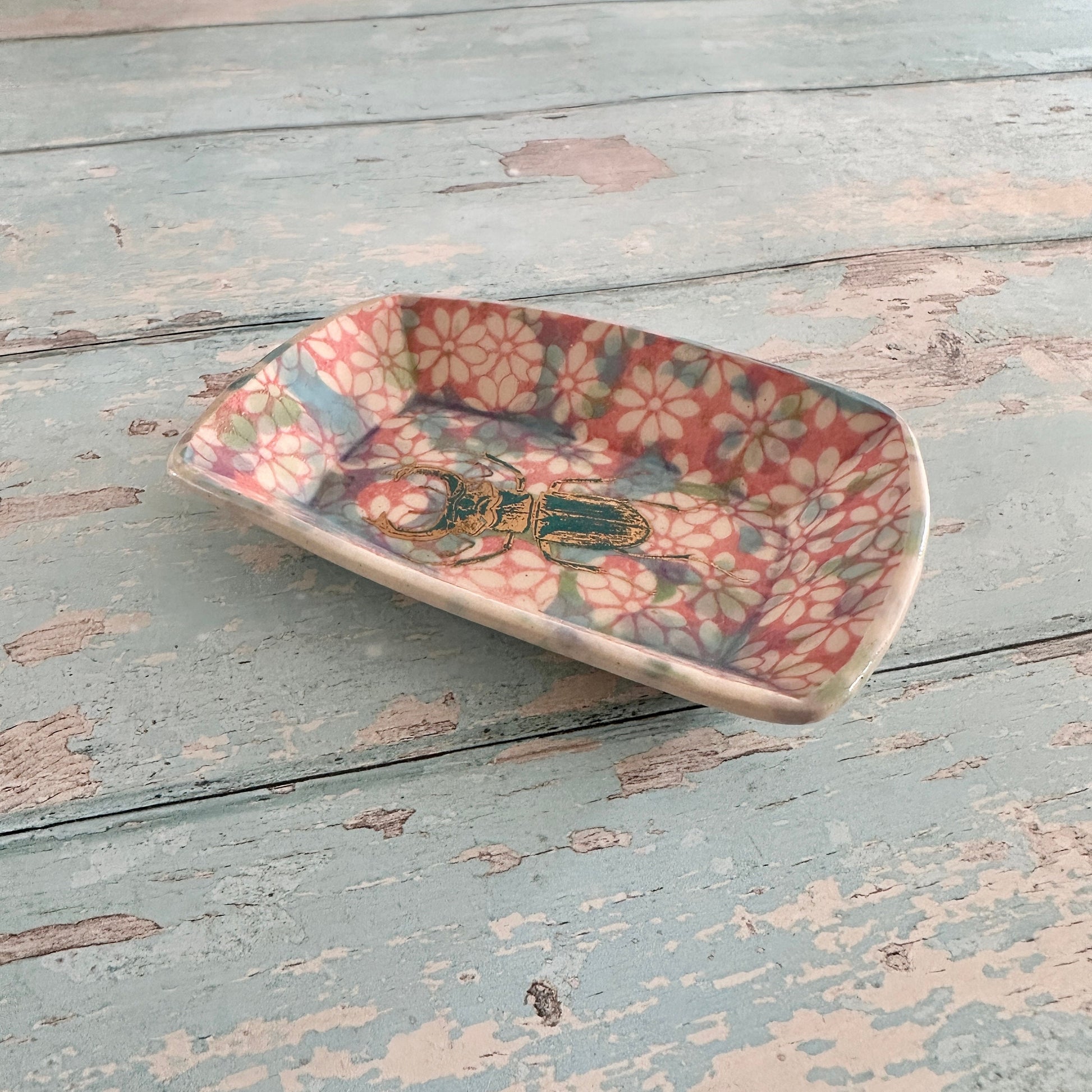 Small Pink and Gold Beetle Ring Dish, Handmade Ceramic Pot