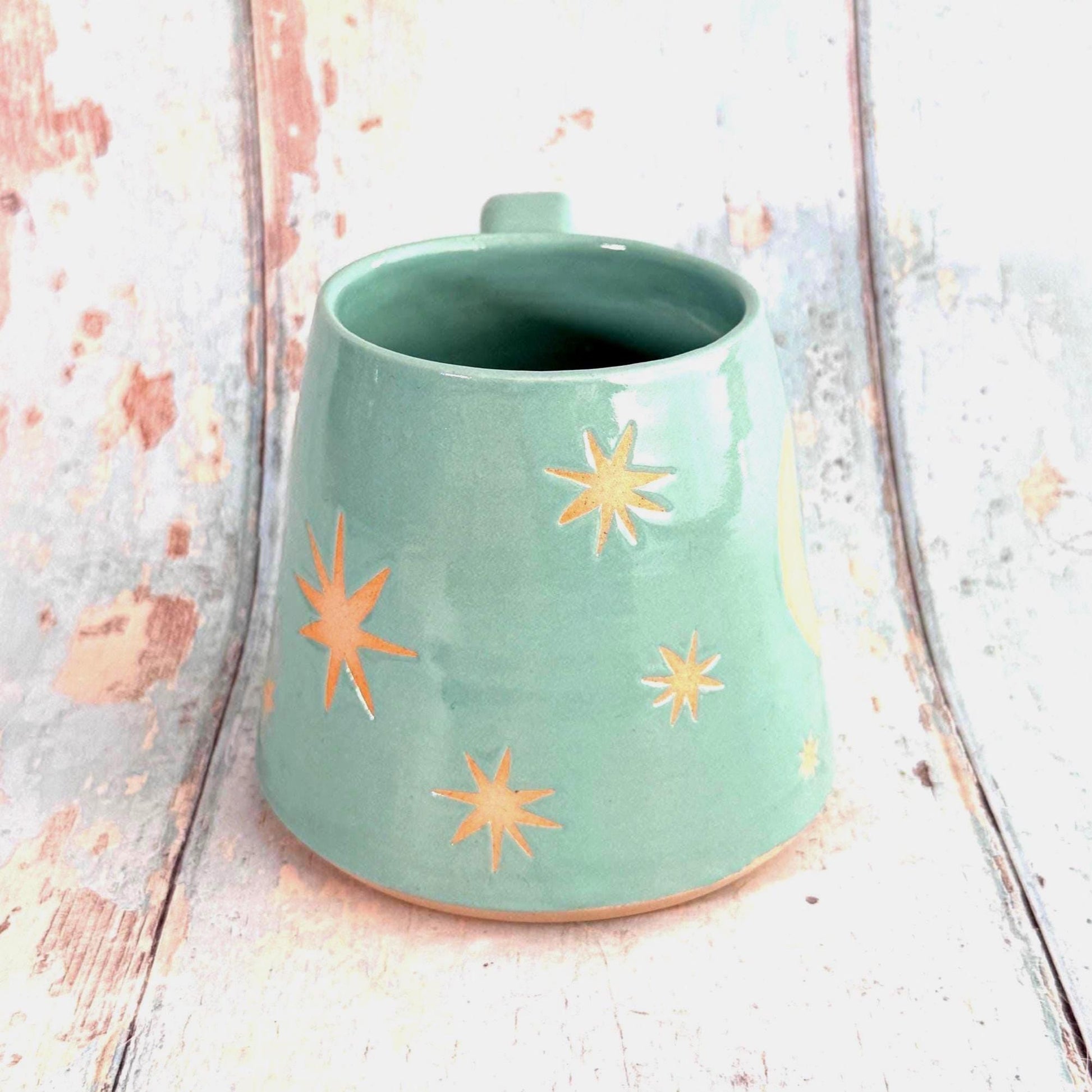 Turquoise Moon & Star Celestial Mug, Large Ceramic Cup