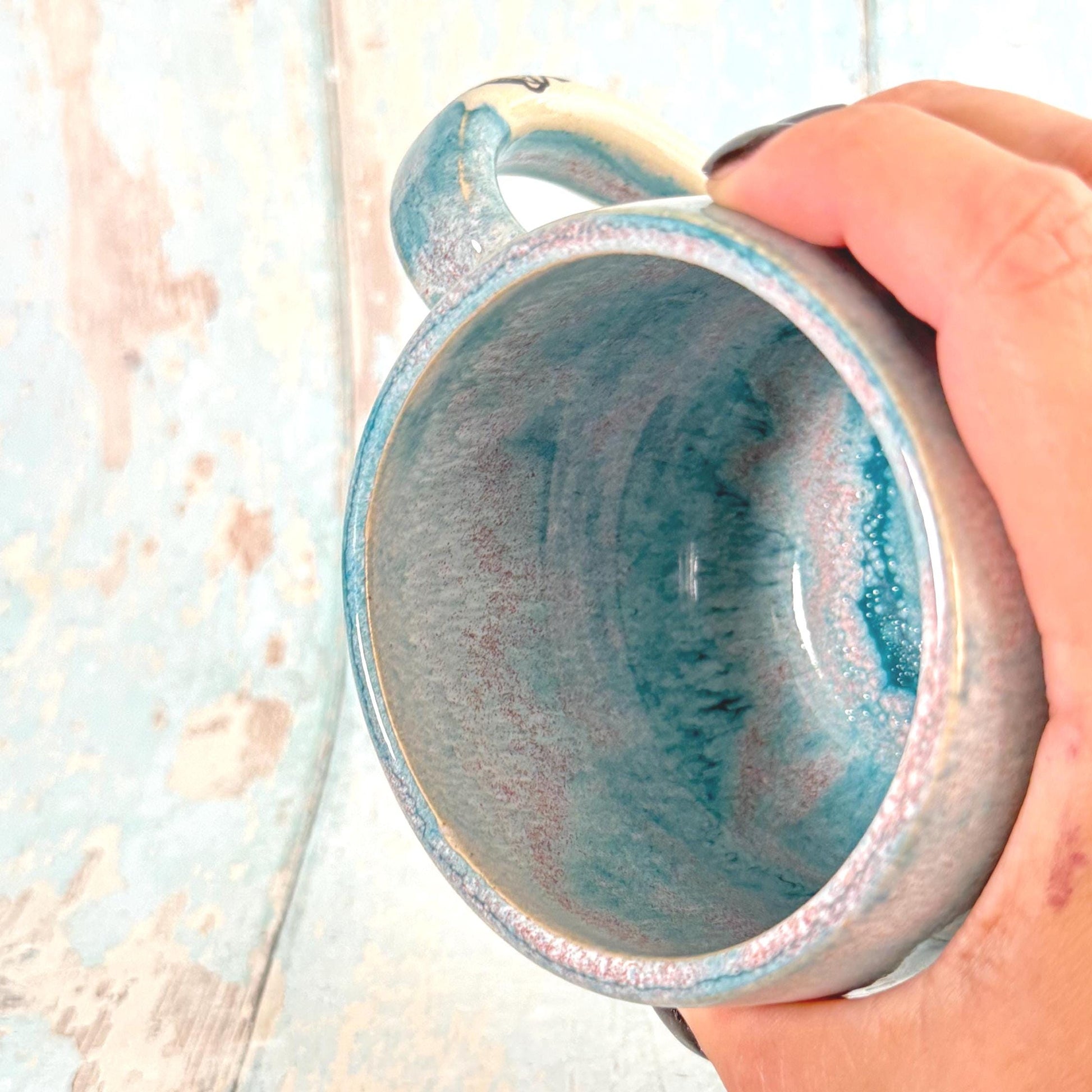 Turquoise Skull Mug, Handmade Ceramic Cup